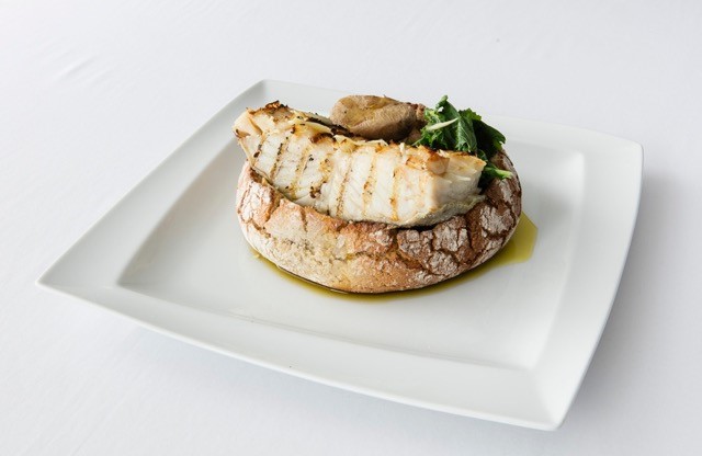 Start by grilling the cod. Remove the inside from the corn bread and set aside. Bake the onions together with the potatoes at 170ᵒC for 40 minutes. After roasting, peel the onions and cut them into pieces. With your hands or with a kitchen hammer slightly punch the potatoes. Place the onions, the potatoes, the previously cooked turnip greens and the cod in a baking dish or inside the corn bread. Drizzle with olive oil, add chopped garlic and serve.